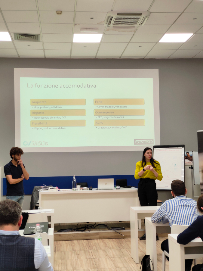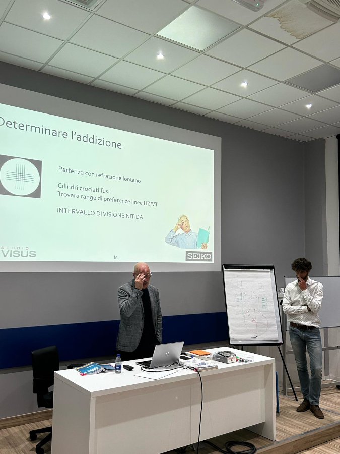 Alla tappa di Firenze hanno partecipato 25 ottici optometristi del centro Italia. Come relatori sono intervenuti Matteo Malattia e Silvia Pelizzari, rispettivamente titolare e collaboratrice di Studio Visus di Oggiono, in provincia di Lecco, oltre ad Andrea Pirotta, docente al corso di laurea in Ottica e Optometria dell’Università di Milano-Bicocca: presenti sin dall’inizio di questo iter di formazione professionale, che Seiko ha avviato nel 2023 in collaborazione con il centro polispecialistico lombardo, hanno portato la propria esperienza in ambito optometrico e dato vita a una serie di esercitazioni pratiche.