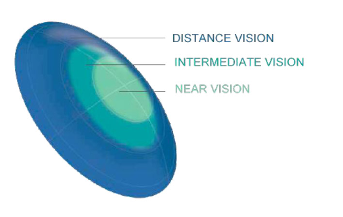 Le lenti a contatto multifocali sono lenti particolari con diverse zone di correzione al loro interno. Una di queste aree è dedicata alla messa a fuoco degli oggetti vicini, un’altra per la messa a fuoco degli oggetti lontani ed infine una per le distanze intermedie. Questo design consente così di correggere oltre ad altri difetti (miopia, ipermetropia e astigmatismo) anche la presbiopia.
